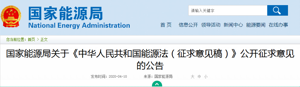 4月10日,國家能源局發(fā)布了關(guān)于《中華人民共和國能源法(征求意見稿)》公開征求意見的公告。