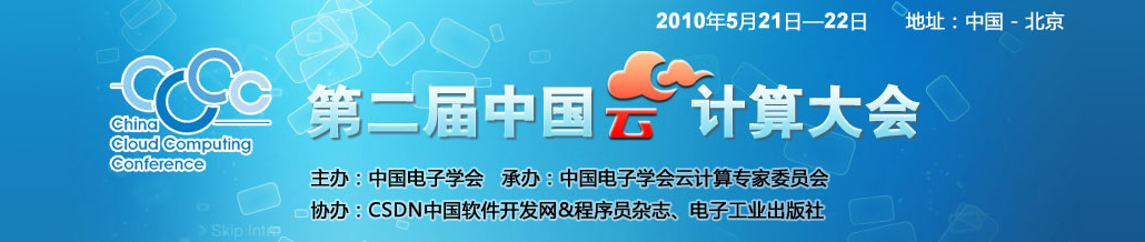 最新消息,第二屆中國云計算大會將于2010年5月21日——22日在北京新云南皇冠假日酒店舉行,此次會議由中國電子學會主辦,國際信息處理聯(lián)合會