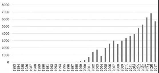 截至2017年12月,在中國(guó)知網(wǎng)上以“教育信息化”為主題進(jìn)行檢索,得到期刊論文59461篇,這些文章中包含教育信息化的各個(gè)要素,包括基礎(chǔ)設(shè)施、信